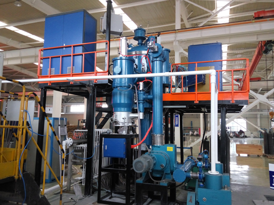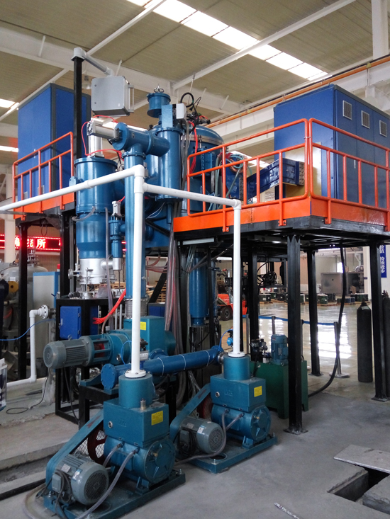 真空感應凝鑄爐是利用中頻感應加熱原理,在真空或保護氣氛下,將稀有金屬或特種合金在熔煉坩堝內熔化后,澆入凝鑄模具內,凝鑄模具通過電阻加熱進行恒溫保溫,在恒溫狀態(tài)下,由模具升降機構通過一定速度緩慢將模具移出保溫感應器,通過模具底部托盤水冷及外部水冷罩將金屬液體冷卻凝固;是為各種稀有金屬及特種合金及其它材料的工業(yè)生產和試驗而設計的;真空感應凝鑄爐還具有傳統(tǒng)鑄錠功能,能實現(xiàn)緩冷鑄棒和傳統(tǒng)鑄錠的快速切換。